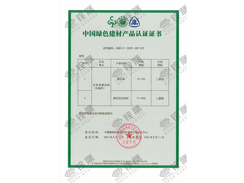 中國綠色建材產(chǎn)品認(rèn)證證書