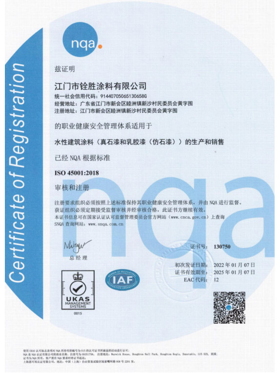 ISO 45001 2018證書